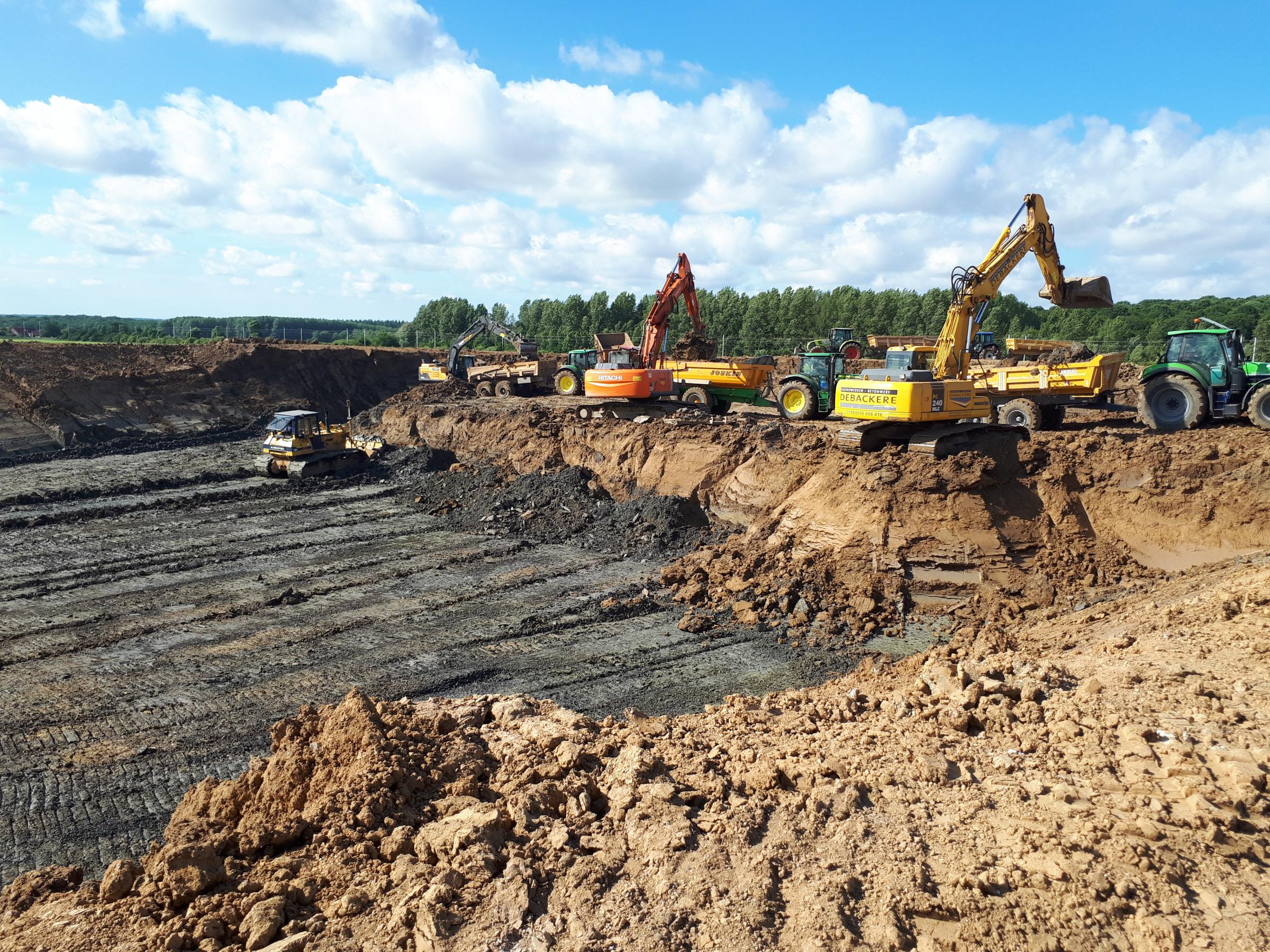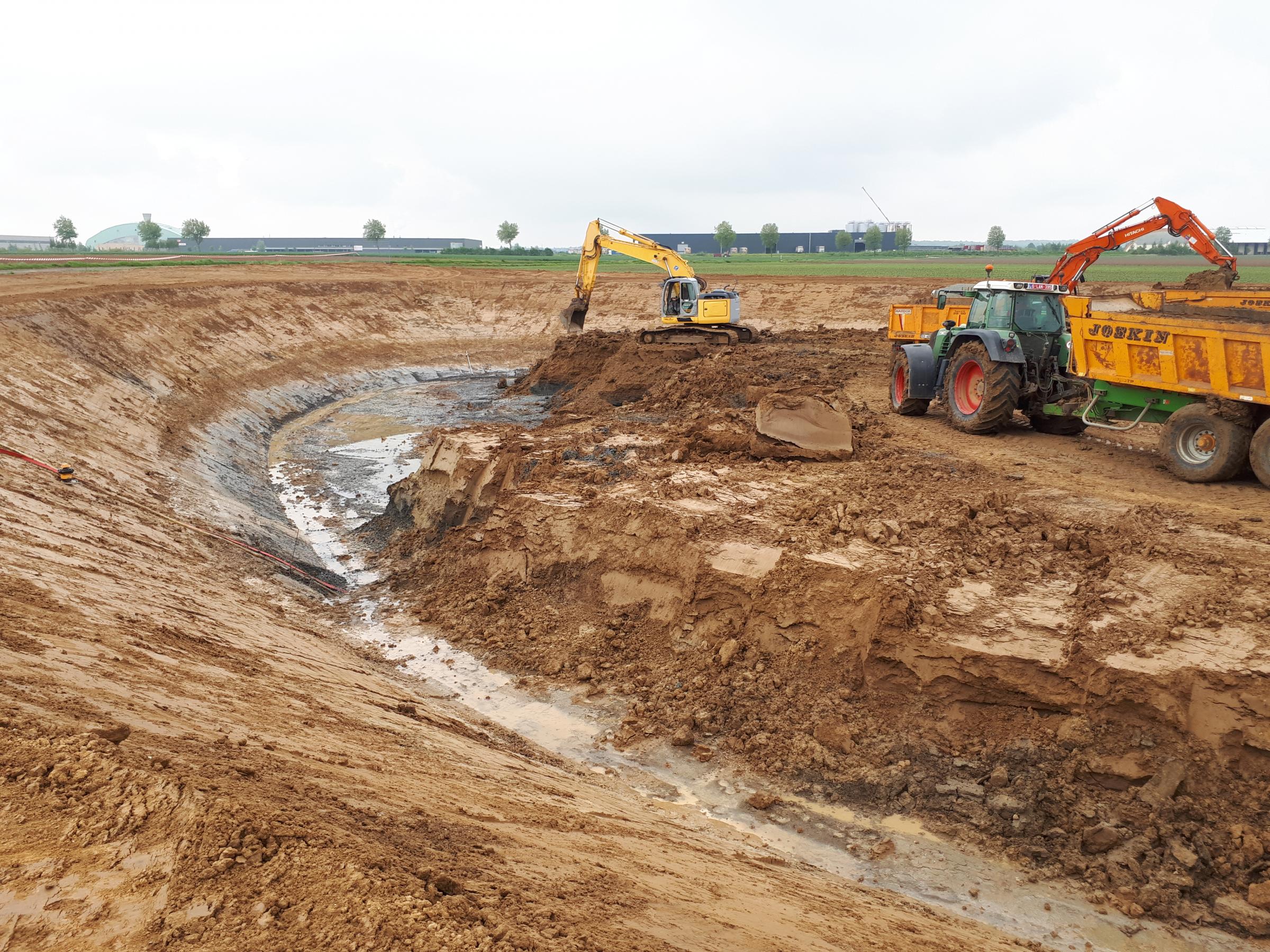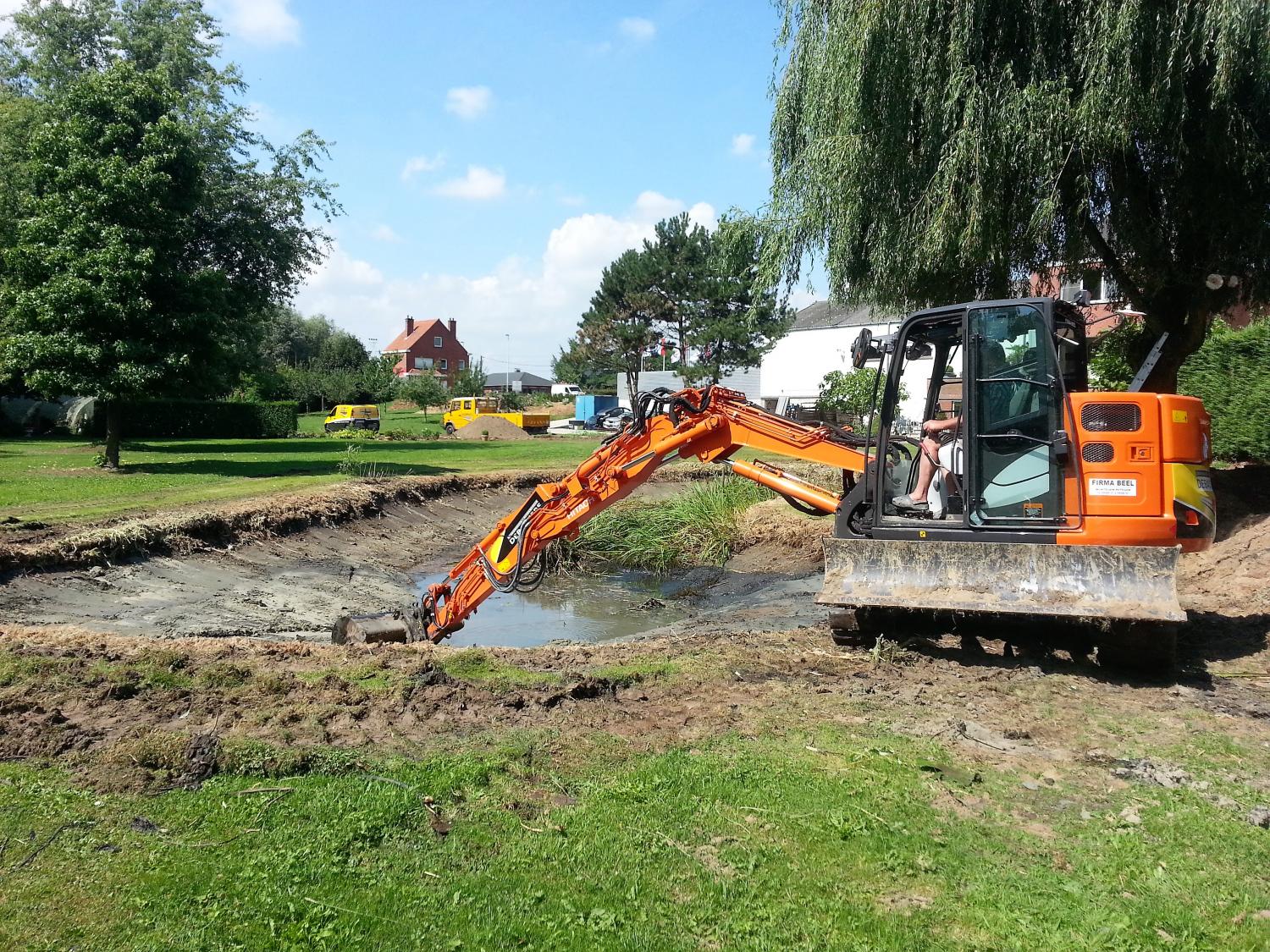 - Graven van waterputten, alsook het vervoer en nivelleren van de overtollige aarde.